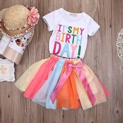 If you are looking for easy to wear but the latest party dresses for girls, then a tutu skirt matched with a graphic tee carrying ‘It’s MyBirthday‘ can be an ideal outfit. It’s a colorful dress capable of grabbing the attention of viewers. Wearing the set, all eyes will be on your little girl.