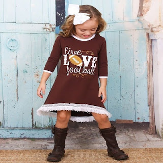 Girls brown “Live Love Football” graphic print dress: This dress is more than just an outfit. It’s a dream that a father has, to see his little lady follow him in his footstep and love football like he does. This dress is known to strengthen the father daughter bond when they are watching the sport they cheering their favorite teams win it all!