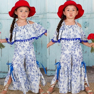 Girls royal/ivory sketched floral off the shoulder jumpsuit: A jumpsuit perfect for any affair, this sketched floral off the shoulder jumpsuit is fun to wear and gives comfort and great looks combined like no other does. It’s a jumpsuit that will enhance your baby’s look wherever she chooses to go. With a perfect weather, this will make the most perfect outing outfit.